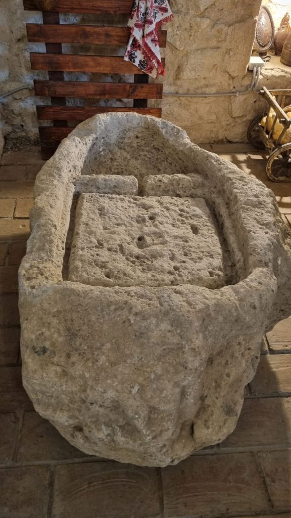 Elemente ale acestei case au fost folosite, pe un alt amplasament, la construirea actualului muzeu. Fiind încă dimineață și poate nici n-ai servit micul dejun, ar fi bine să începi cu povestea vinului. E spusă cu pasiunea mustului clocotind astâmpărat de muzeograf Emilia Savelovici, coordonatoarea muzeului.