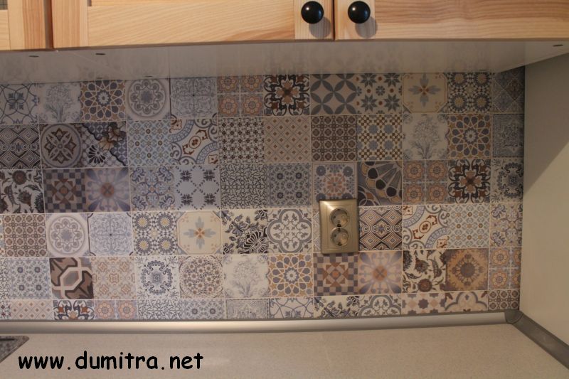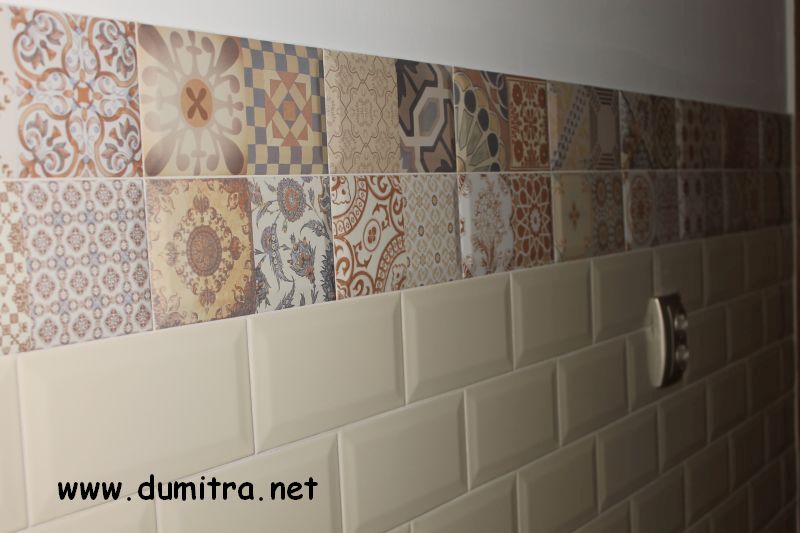 100 de placi de faianta decoativa si doar cateva se repeta inca o data. Privitorul, vizitatorul bucatariei mele va fi supus exerctiului de a identifica, compara, studia, rabdarea si taria cafelei pe care o prepar cam ca la Paris fiind molipsitoare si datatoare de dependenta.